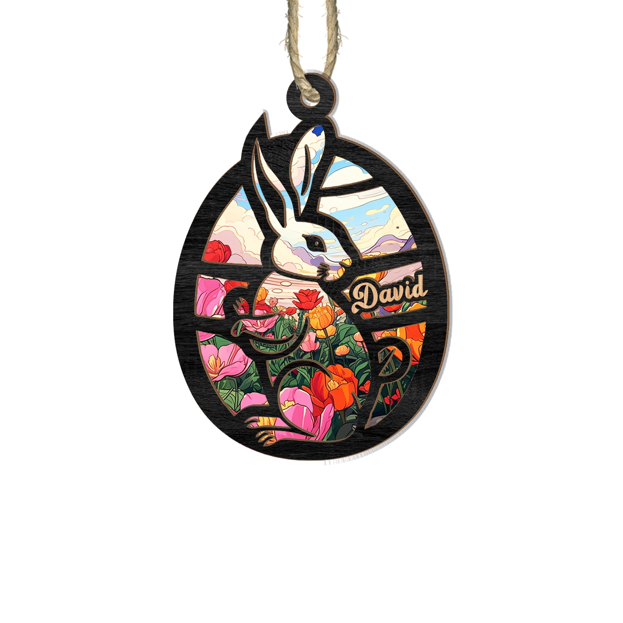 Personalized Eastear Rabbit Suncatcher Ornament, Gift For Eastear Egg Rabbit Suncatcher, Eastear Egg Gift For Family, Window Wall Hanging Home Decor, Car Hanging Interior Rearview
